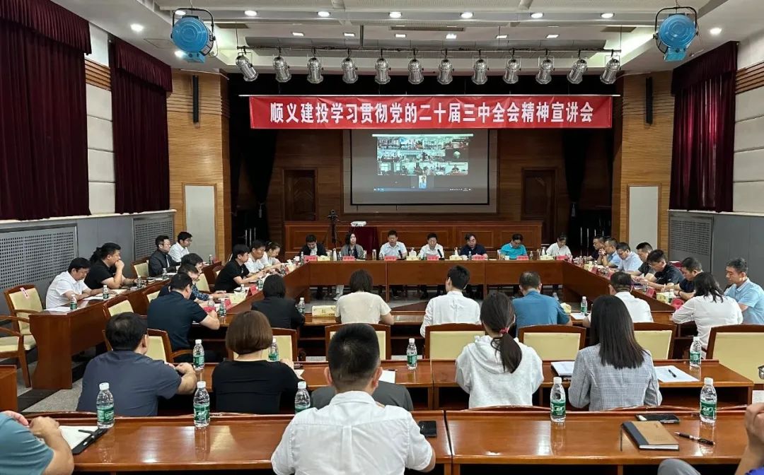 9月13日,順義建投黨委召開學習貫徹黨的二十屆三中全會精神宣講會。會議由公司黨委副書記胡代安同志主持,黨委班子成員、各黨支部委員、總公司各職能部室中層副職以上干部、各黨支部全體黨員干部200余人參會,會議以現場會議和視頻會議形式召開。