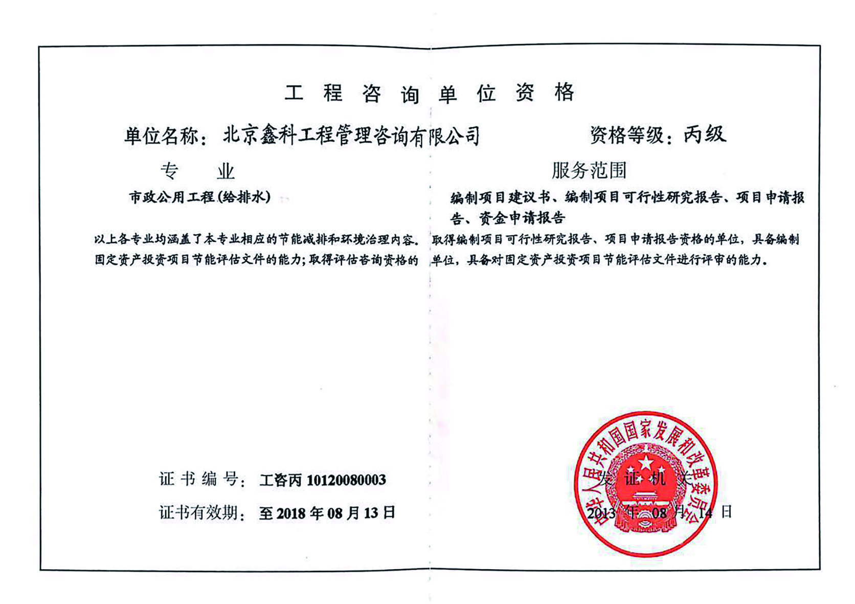 北京鑫科工程管理咨詢有限公司是一家具有工程咨詢資質的代建型服務企業,業務范圍涉及項目建議書編制、可行性研究報告編制、項目申請報告、資金申請報告,工程管理咨詢、投資咨詢等工程項目全過程管理服務。公司成立于2006年3月,成立以來一直服務于順義區房建、市政等重點工程項目建設。現有員工40余人,其中注冊咨詢工程師13人,一級注冊建造師2人,中級經濟師2人。