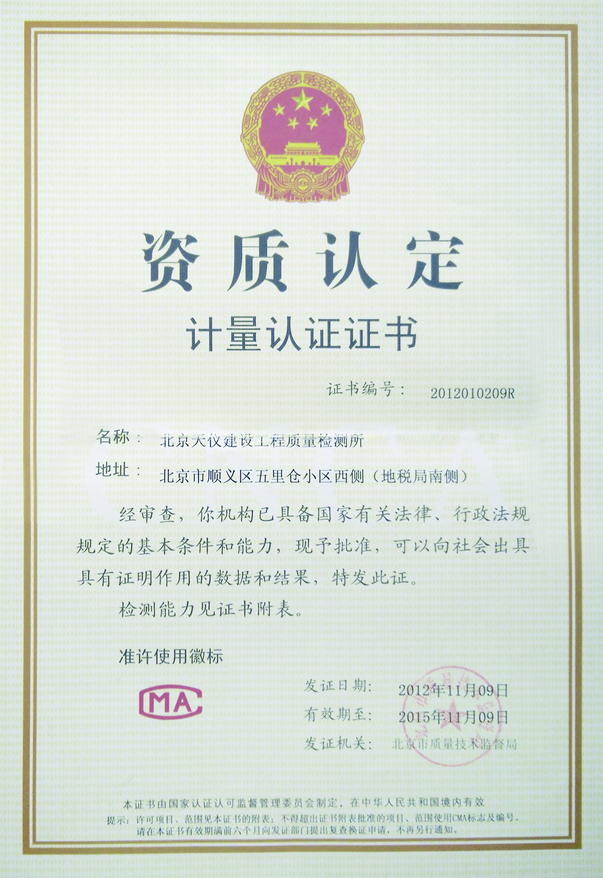 北京陽光誠意工程技術服務有限責任公司是一家以建筑材料檢測為主營業務的公司,具有北京市監督總站檢測管理室認定的一級試驗室資格。2015年10月通過北京市質量技術監督局的計量認證。公司成立于1996年10月,現有員工60 名,其中高級工程師5名,工程師9名,助理工程師10名,技術人員36名,持證上崗率為100%。